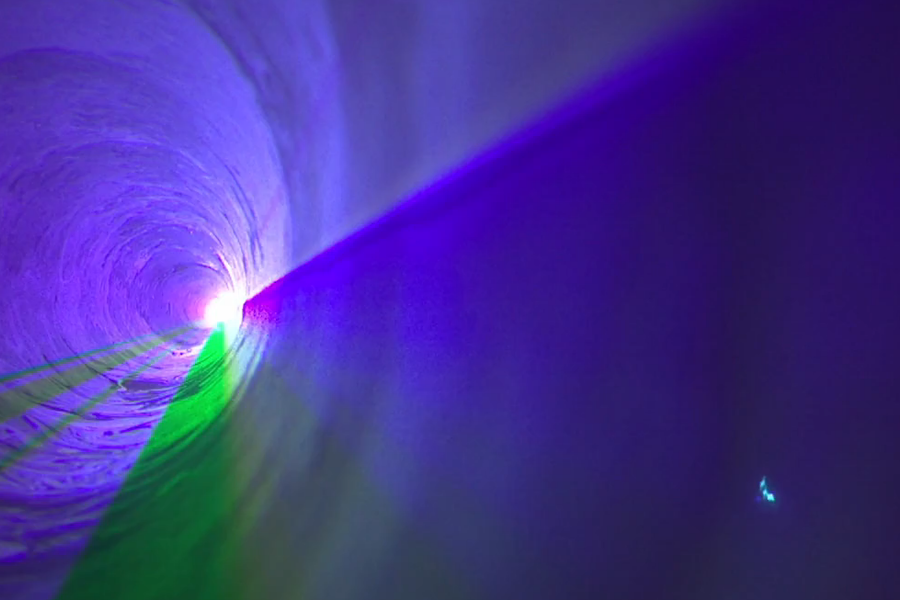 This installation represents this physical nature of light by allowing people to interact and touch beams of light, showing light not as a passive force that we take for granted everyday but as something which interacts with the world around it. These beams of light are projected from a laser and respond to touch and movement, allowing people the possibility to interact with light in a way that is normally not possible.
