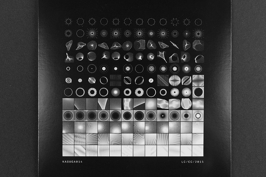 Following the formal rules of dodecaphony, for "Zwölftonform" twelve consecutive titles are composed exclusively with twelve consecutive frequencies. The basic structure for each title is made by up to twelve different sound samples from a generated sine waveform. Built on this basis, these arrangements reference and illustrate especially over time the complexity and increasing compression of the original shape. Following the serial character of the composition concept, the titles were published consecutively as EPs. For the visual translation and presentation as a live performance and audio-visual installation, the sinusoidal waveform is abstracted along the album convention. Following parameterized principles, twelve visual embodiments of this basic shape arise. The increasing complexity is now visible and the prevailing simplicity at the beginning inverted by the end. This evolving aesthetic is punctuated with a grid, that divides the base with the value of the sample number.